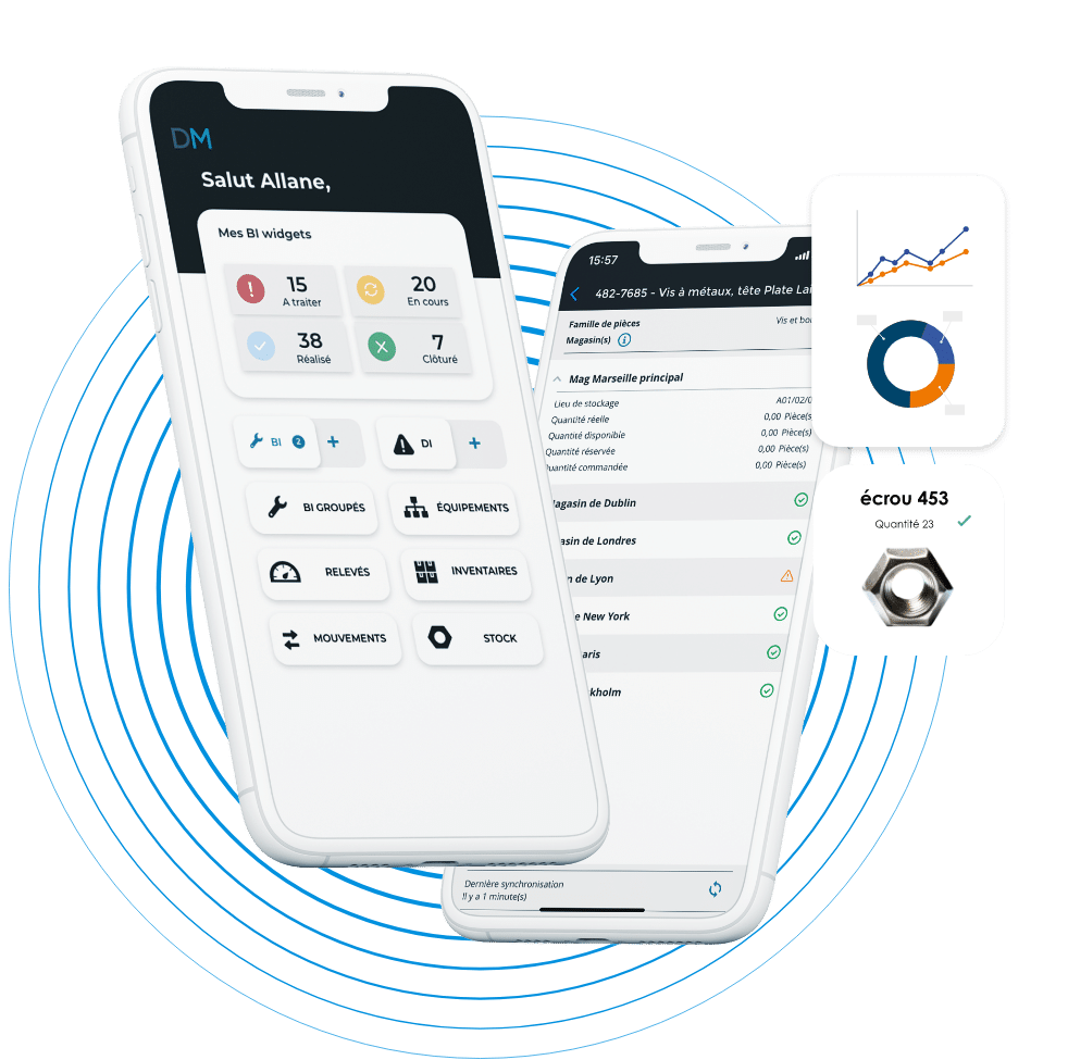 Une GMAO dernière génération dispose de nombreuses fonctionnalités en mobilité accessibles depuis un simple smartphone ou une tablette comme par exemple créer une demande d’intervention, consulter les bons d’intervention, vérifier de la disponibilité d’une pièce détachée en stock, relever des mesures, réaliser un inventaire, etc. Votre application mobile doit être simple et intuitive à utiliser.